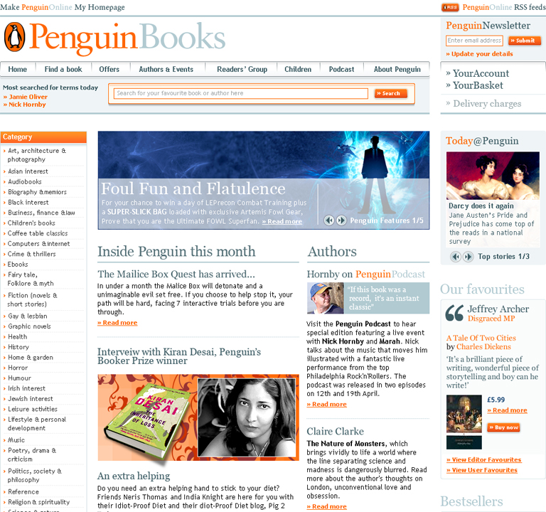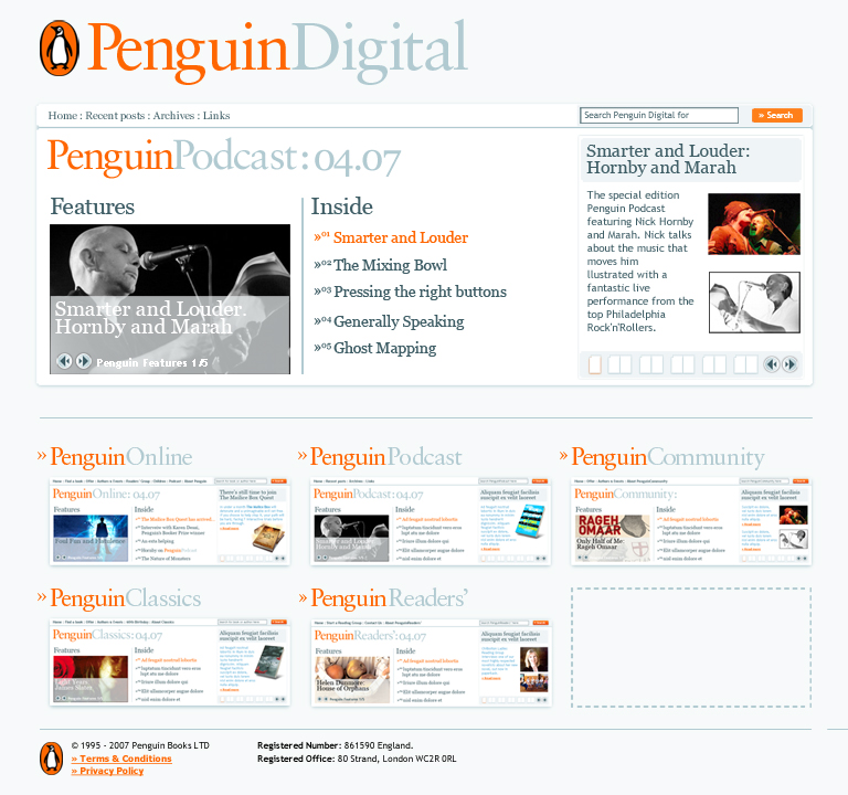 In the latter part of the 1990's whilst exploring new technologies, Penguin became the first trade publisher to have a website. Shortly after the launch I joined Penguin Books to lead the Penguin Digital Design Department and help shape what was previously a marketing portal into what it is now, a content rich destination site.
