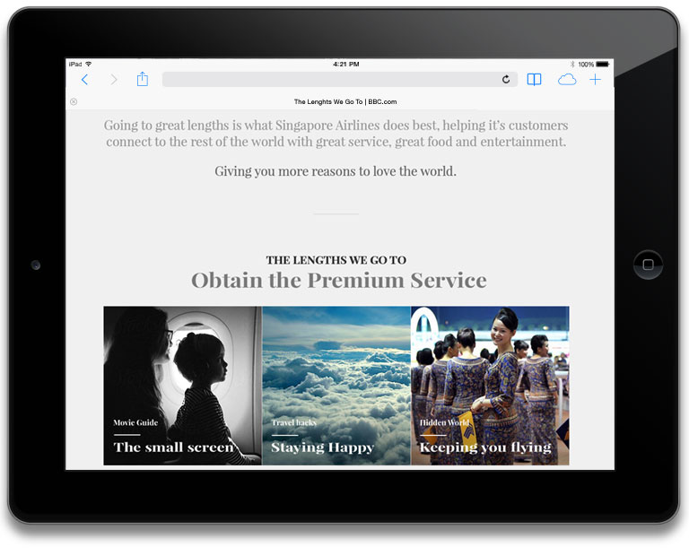 I needed to tell clear, tangible and visual stories, where content would sit alongside BBC Editorial without being either intrusive nor of a lesser informative quality. Text and image needed to feel engaging; layout structured and considerate of the core BBC brand.
