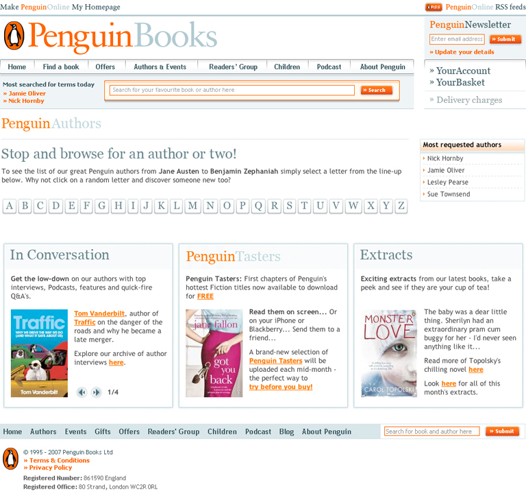 In the latter part of the 1990's whilst exploring new technologies, Penguin became the first trade publisher to have a website. Shortly after the launch I joined Penguin Books to lead the Penguin Digital Design Department and help shape what was previously a marketing portal into what it is now, a content rich destination site.