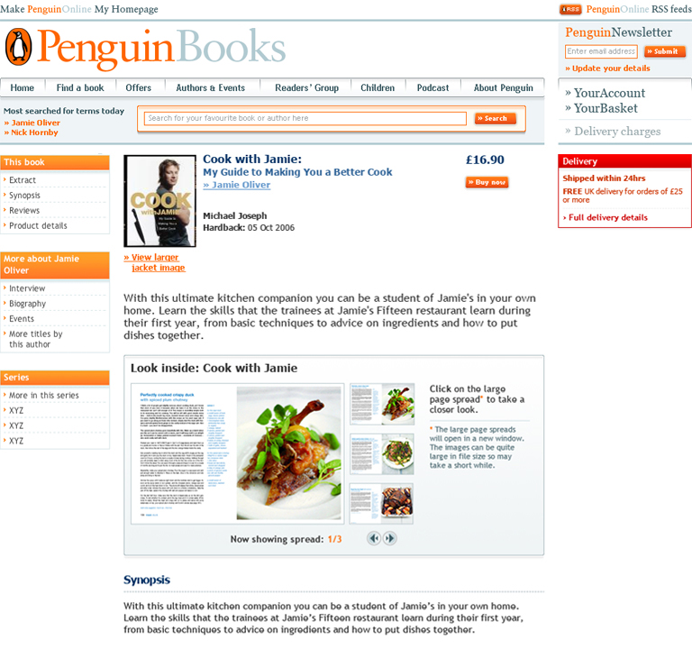 I maximised the use of the Penguin orange to improve the visibility of page sign posting, text-linking and CTA's. Though content heavy, it was clear to see what was of importance, and where to click.