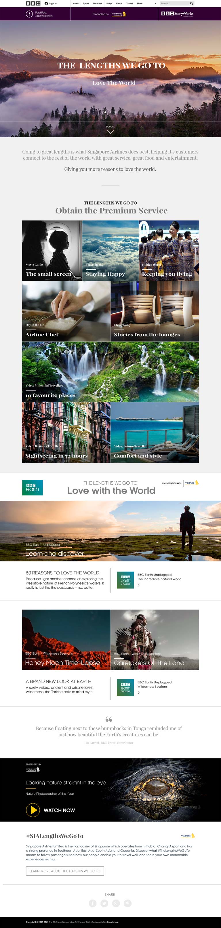 I needed to tell clear, tangible and visual stories, where content would sit alongside BBC Editorial without being either intrusive nor of a lesser informative quality. Text and image needed to feel engaging; layout structured and considerate of the core BBC brand.